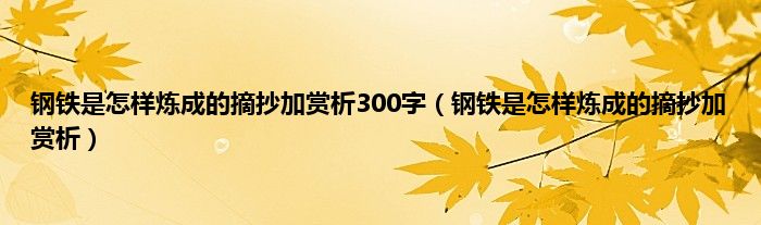 以上就是【钢铁是怎样炼成的摘抄加赏析300字,钢铁是怎样炼成的摘抄加赏析】相关内容。