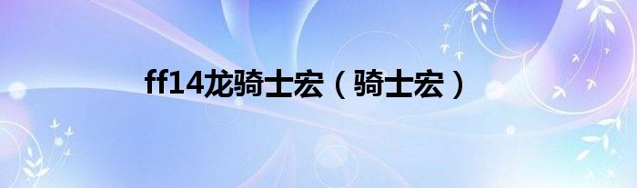大家好,小问来为大家解答以上问题。ff14龙骑士宏,骑士宏这个很多人还不知道,现在让我们一起来看看吧!