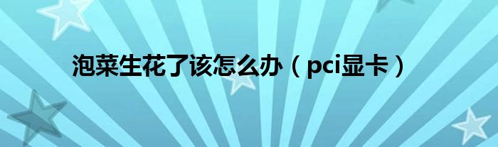 大家好,小问来为大家解答以上问题。泡菜生花了该怎么办,pci显卡这个很多人还不知道,现在让我们一起来看看吧!