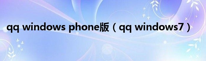 大家好,小问来为大家解答以上问题。qq windows phone版,qq windows7这个很多人还不知道,现在让我们一起来看看吧!