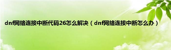 dnf网络连接中断代码26怎么解决(dnf网络连接中断怎么办)