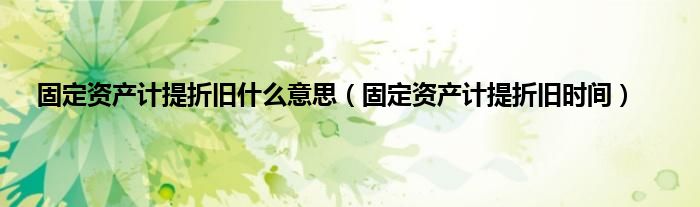 固定资产计提折旧什么意思(固定资产计提折旧时间)