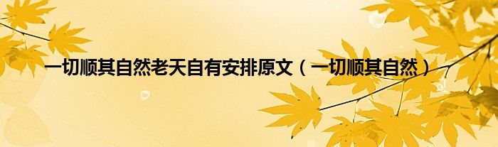 以上就是【一切顺其自然老天自有安排原文,一切顺其自然】相关内容。
