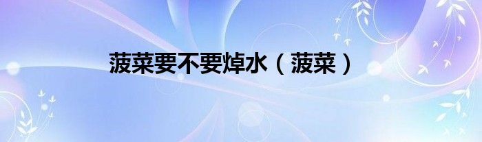 菠菜要不要焯水(菠菜)