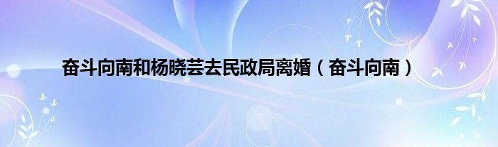 以上就是【奋斗向南和杨晓芸去民政局离婚,奋斗向南】相关内容。
