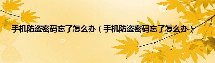 手机防盗密码忘了怎么办(手机防盗密码忘了怎么办)