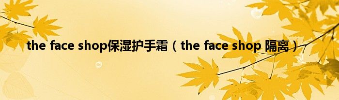 大家好,小问来为大家解答以上问题。the face shop保湿护手霜,the face shop 隔离这个很多人还不知道,现在让我们一起来看看吧!