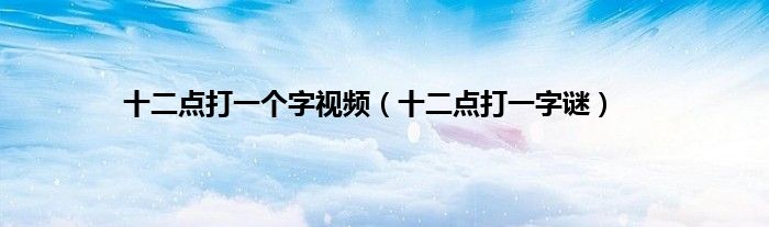 以上就是【十二点打一个字视频,十二点打一字谜】相关内容。