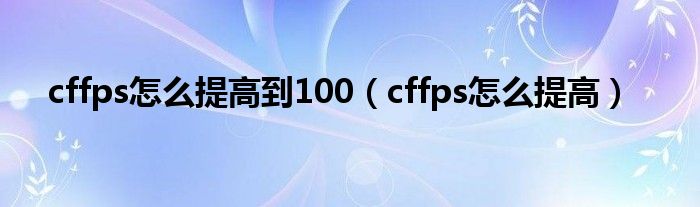 以上就是【cffps怎么提高到100,cffps怎么提高】相关内容。