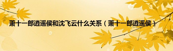 大家好,小问来为大家解答以上问题。萧十一郎逍遥侯和沈飞云什么关系,萧十一郎逍遥侯这个很多人还不知道,现在让我们一起来看看吧!