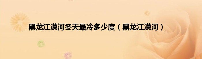 以上就是【黑龙江漠河冬天最冷多少度,黑龙江漠河】相关内容。