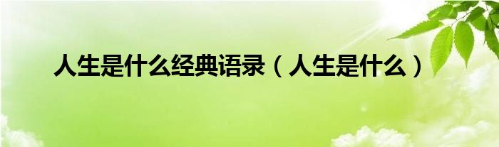 大家好,小问来为大家解答以上问题。人生是什么经典语录,人生是什么这个很多人还不知道,现在让我们一起来看看吧!