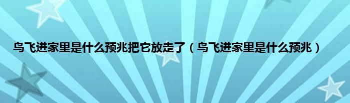 以上就是【鸟飞进家里是什么预兆把它放走了,鸟飞进家里是什么预兆】相关内容。