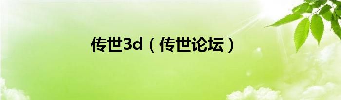 传世3d(传世论坛)