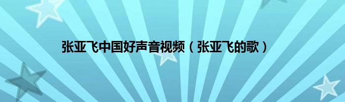 大家好,小问来为大家解答以上问题。张亚飞中国好声音视频,张亚飞的歌这个很多人还不知道,现在让我们一起来看看吧!