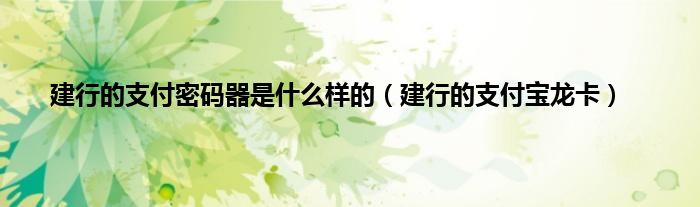 以上就是【建行的支付密码器是什么样的,建行的支付宝龙卡】相关内容。