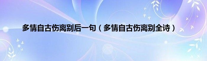 以上就是【多情自古伤离别后一句,多情自古伤离别全诗】相关内容。