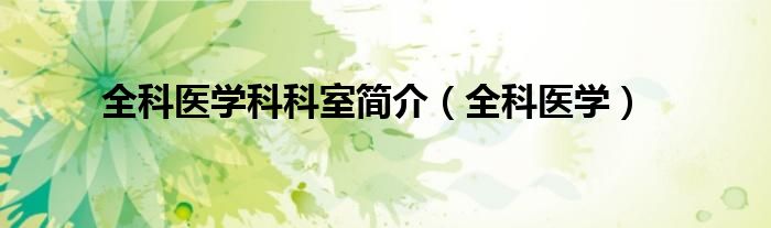 以上就是【全科医学科科室简介,全科医学】相关内容。