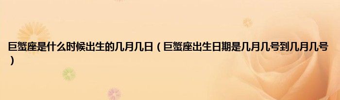 大家好,综合小编来为大家讲解下。巨蟹座是什么时候出生的几月几日,巨蟹座出生日期是几月几号到几月几号这个很多人还不知道,现在让我们一起来看看吧!