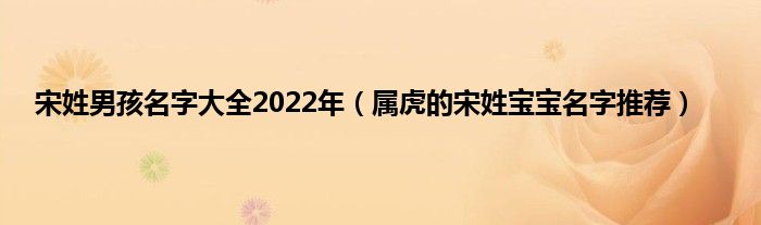 大家好,综合小编来为大家讲解下。宋姓男孩名字大全2022年,属虎的宋姓宝宝名字推荐这个很多人还不知道,现在让我们一起来看看吧!