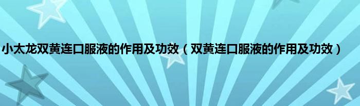 本文,小太龙双黄连口服液的作用及功效,双黄连口服液的作用及功效到此就分享完毕,希望对大家有所帮助。
