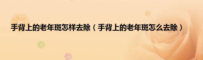 本文,手背上的老年斑怎样去除,手背上的老年斑怎么去除到此就分享完毕,希望对大家有所帮助。