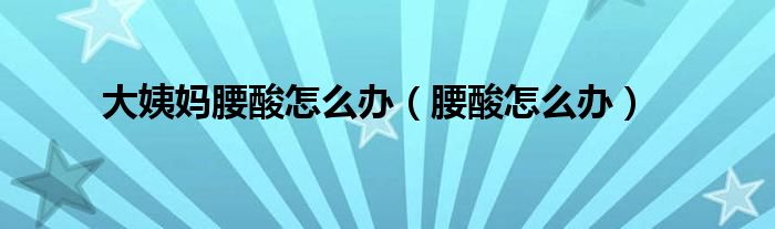 大家好,大姨妈腰酸怎么办,腰酸怎么办很多人还不知道,现在让我们一起来看看吧!