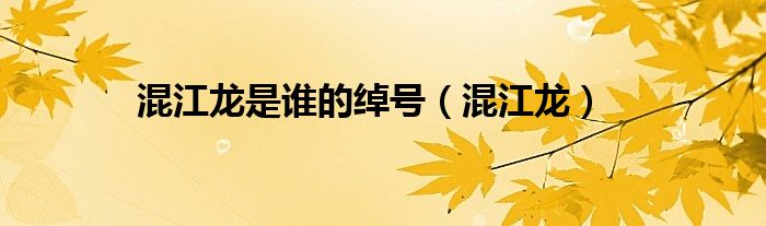 大家好,小问来为大家解答以上问题。混江龙是谁的绰号,混江龙这个很多人还不知道,现在让我们一起来看看吧!