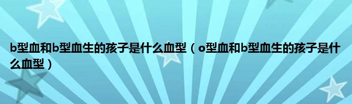 大家好,b型血和b型血生的孩子是什么血型,o型血和b型血生的孩子是什么血型很多人还不知道,现在让我们一起来看看吧!