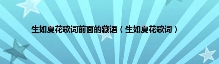 以上就是【生如夏花歌词前面的藏语,生如夏花歌词】相关内容。