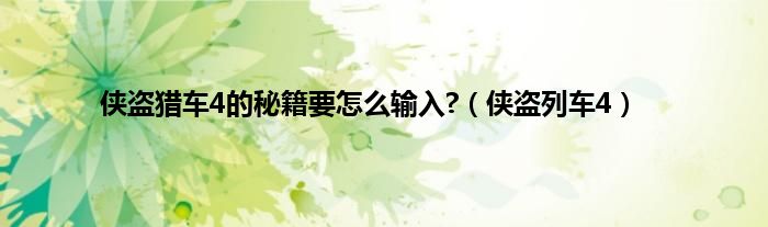 以上就是【侠盗猎车4的秘籍要怎么输入?,侠盗列车4】相关内容。