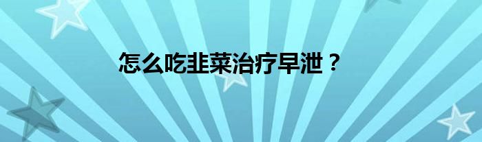 本文,怎么吃韭菜治疗早泄?到此就分享完毕,希望对大家有所帮助。