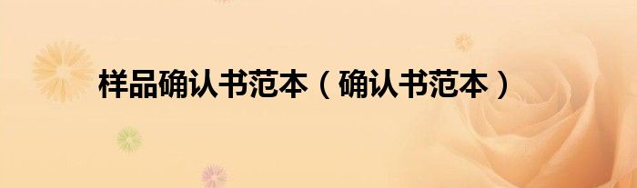 以上就是【样品确认书范本,确认书范本】相关内容。