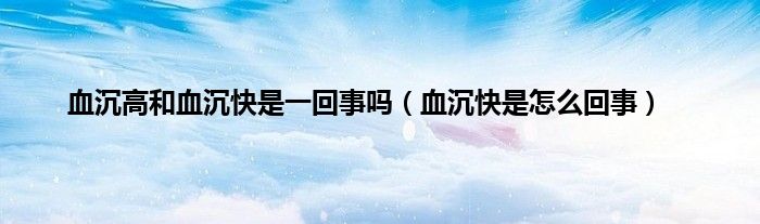 大家好,血沉高和血沉快是一回事吗,血沉快是怎么回事很多人还不知道,现在让我们一起来看看吧!