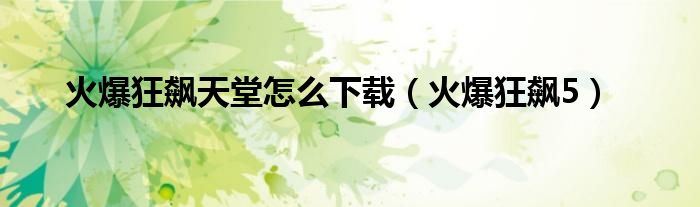 以上就是【火爆狂飙天堂怎么下载,火爆狂飙5】相关内容。