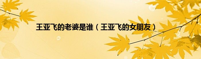 以上就是【王亚飞的老婆是谁,王亚飞的女朋友】相关内容。