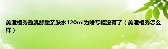 大家好,小问来为大家解答以上问题。美津植秀盈肌舒缓亲肤水120ml为啥专柜没有了,美津植秀怎么样这个很多人还不知道,现在让我们一起来看看吧!