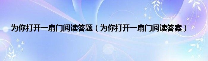 大家好,小问来为大家解答以上问题。为你打开一扇门阅读答题,为你打开一扇门阅读答案这个很多人还不知道,现在让我们一起来看看吧!