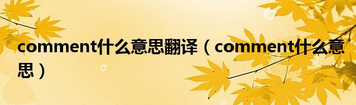 以上就是【comment什么意思翻译,comment什么意思】相关内容。