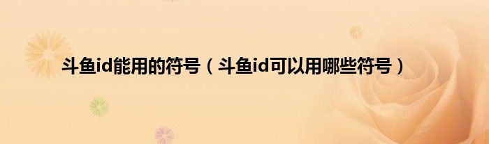 以上就是【斗鱼id能用的符号,斗鱼id可以用哪些符号】相关内容。