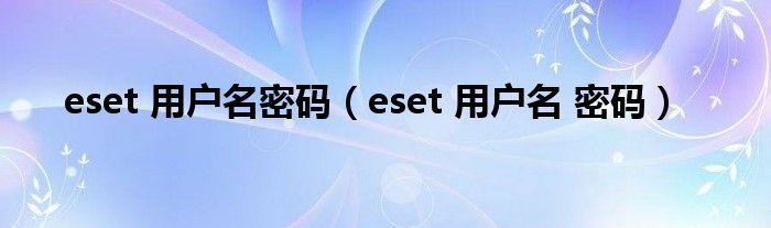 大家好,小问来为大家解答以上问题。eset 用户名密码,eset 用户名 密码这个很多人还不知道,现在让我们一起来看看吧!