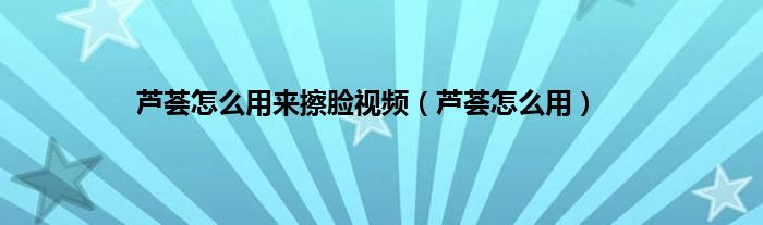 以上就是【芦荟怎么用来擦脸视频,芦荟怎么用】相关内容。