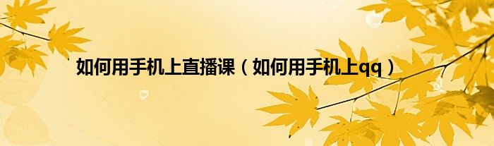 以上就是【如何用手机上直播课,如何用手机上qq】相关内容。