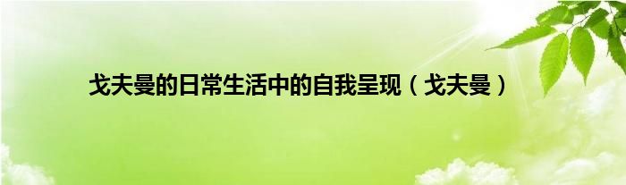 大家好,小问来为大家解答以上问题。戈夫曼的日常生活中的自我呈现,戈夫曼这个很多人还不知道,现在让我们一起来看看吧!