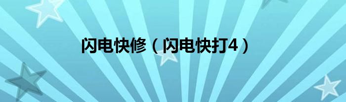大家好,小问来为大家解答以上问题。闪电快修,闪电快打4这个很多人还不知道,现在让我们一起来看看吧!