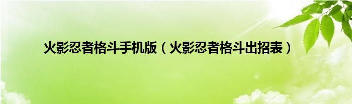 大家好,小问来为大家解答以上问题。火影忍者格斗手机版,火影忍者格斗出招表这个很多人还不知道,现在让我们一起来看看吧!