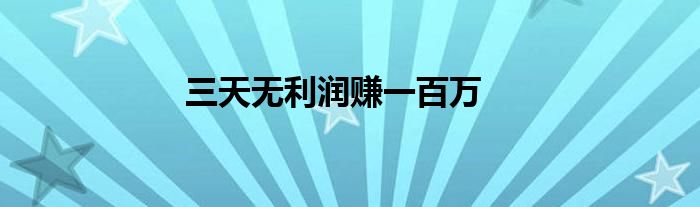 大家好,小问来为大家解答以上问题。三天无利润赚一百万这个很多人还不知道,现在让我们一起来看看吧!