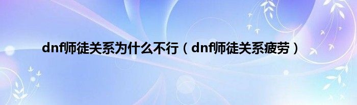 以上就是【dnf师徒关系为什么不行,dnf师徒关系疲劳】相关内容。