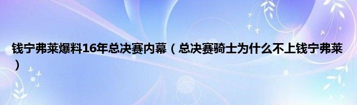 大家好,钱宁弗莱爆料16年总决赛内幕,总决赛骑士为什么不上钱宁弗莱很多人还不知道,现在让我们一起来看看吧!