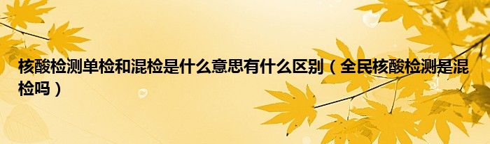 本文,核酸检测单检和混检是什么意思有什么区别,全民核酸检测是混检吗到此就分享完毕,希望对大家有所帮助。
